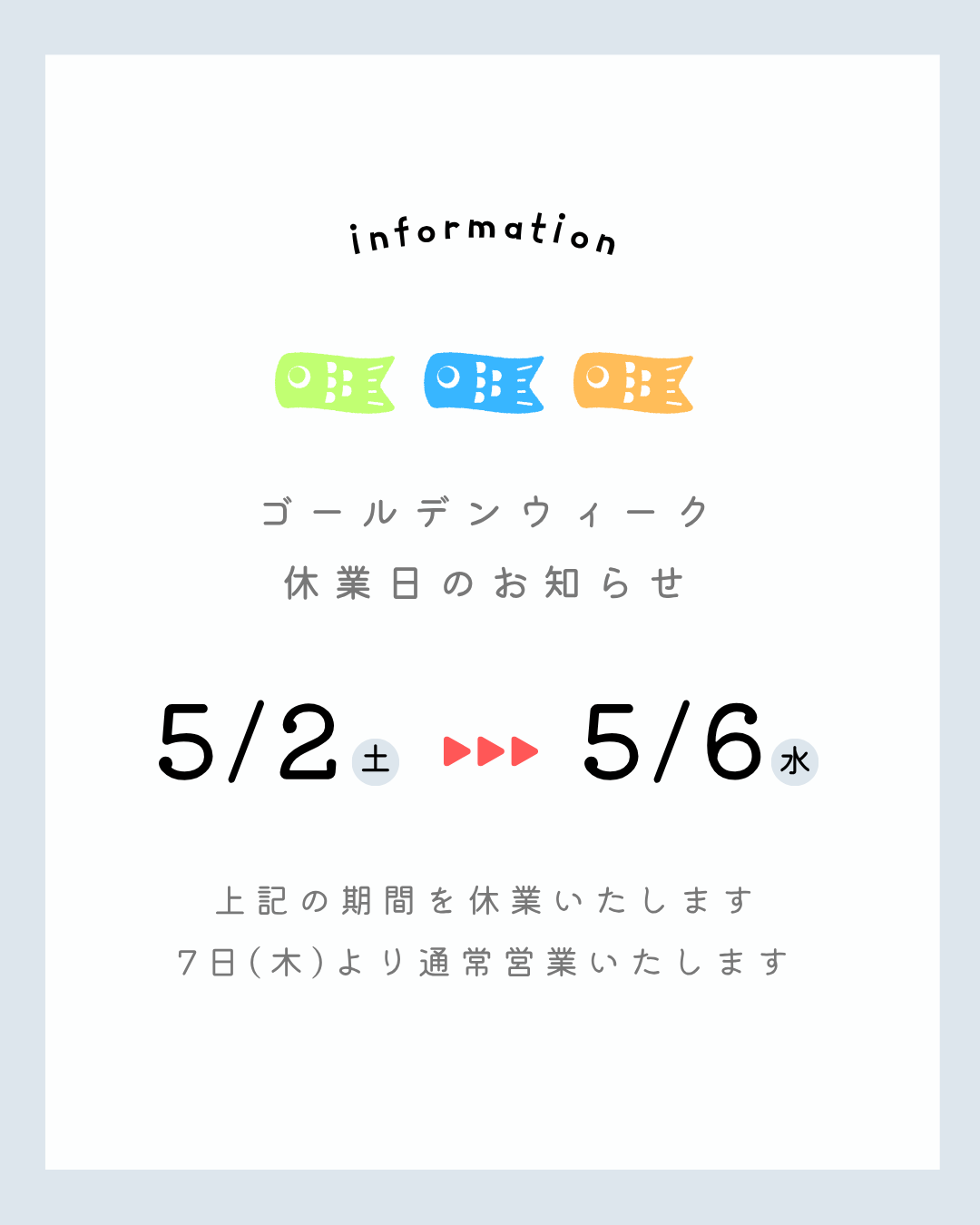 GWの休業日のお知らせ